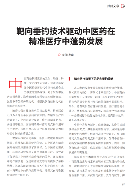 此次赵龙山教授的文章被选为《健康中国观察》杂志封面文章,不仅展示了靶向垂钓技术在中医药领域的独特优势,还为推动中医药在精准医疗中的应用提供了有力支持。随着科研工作的不断深入和技术的不断创新,中医药将在精准医疗领域发挥更加重要的作用,为健康中国战略的全面实施提供坚实的技术支撑与创新动力。