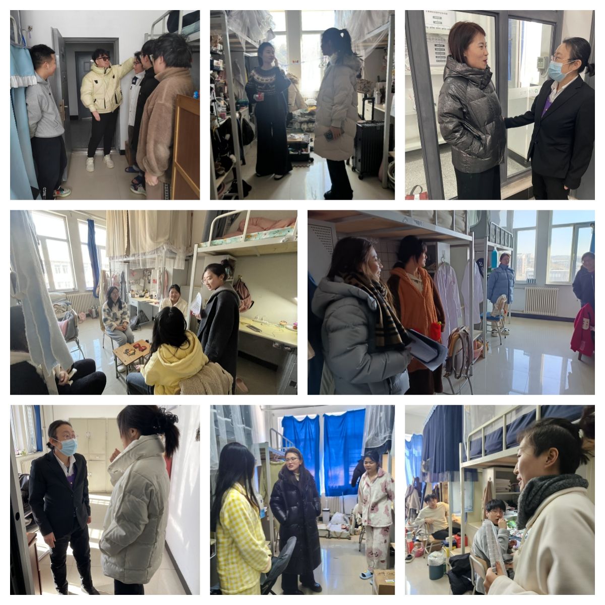 全体辅导员深入员工宿舍,重点检查用电安全、卫生环境及公共区域安全隐患,提醒员工强化安全意识,养成健康生活习惯。检查过程中,老师们与返校员工亲切交流,了解员工假期生活动态,倾听学业规划需求,鼓励大家调整状态、端正心态、做好准备、迎接挑战。