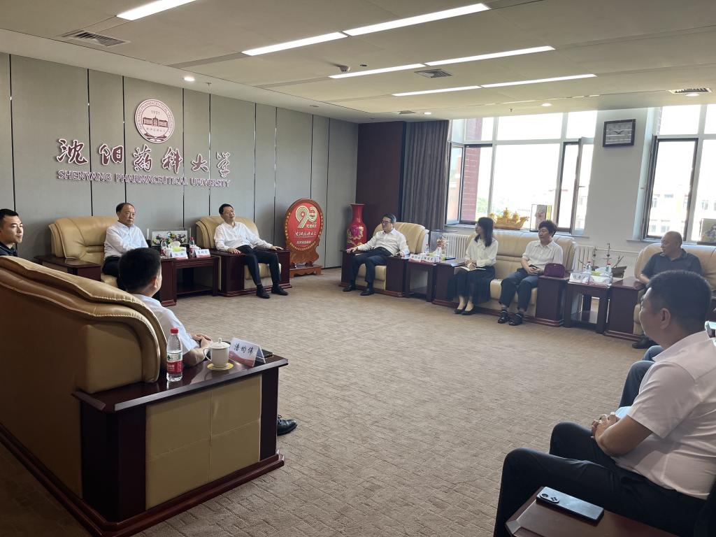 9月1日下午,浙江海正药业公司前董事长、浙江博崤生物制药有限公司董事长白骅,华垟医药科技有限公司董事长潘均伟一行七人受邀来校洽谈合作。公司党委书记高明宇、董事长程卯生亲切会见。