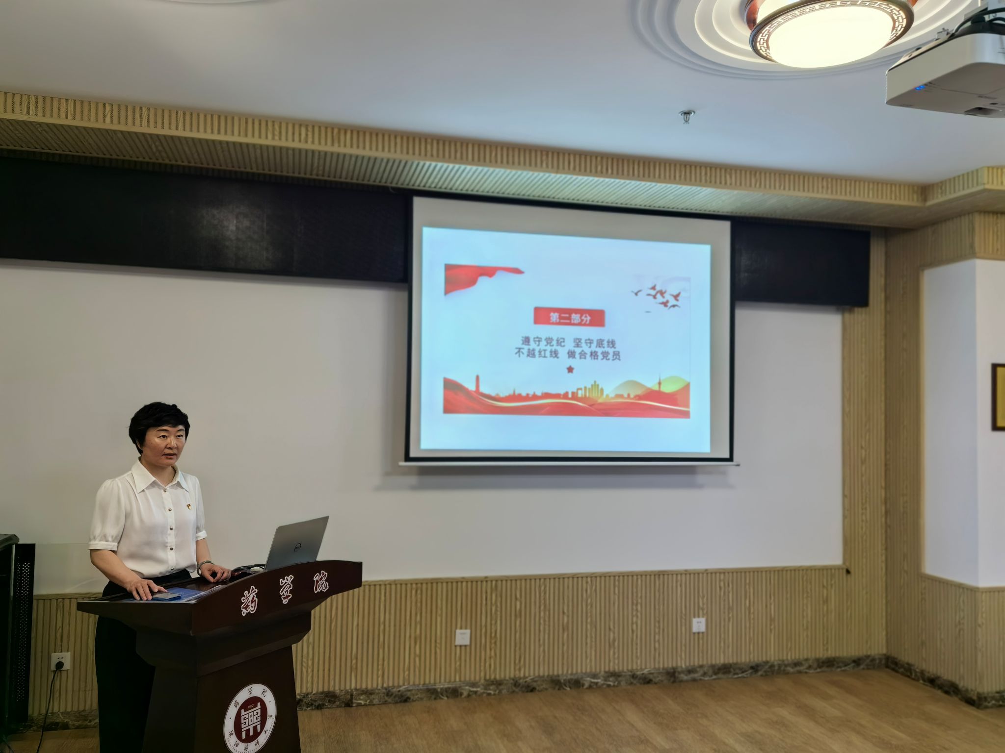 杨奇志同志从习近平总书记关于党纪学习教育重要讲话及指示精神展开讲述,强调纪律在管党治党方面的“戒尺”作用,明确要把纪律建设摆在更突出位置,号召全体党员要形成遵规守纪的高度自觉。她指出支部作为党的基层组织,要全面加强党的纪律建设,坚持党性党风党纪一起抓,教育引导全体党员从思想上固本培元,提高党性觉悟,增强拒腐防变能力,弘扬富贵不能淫、贫贱不能移、威武不能屈的浩然正气。