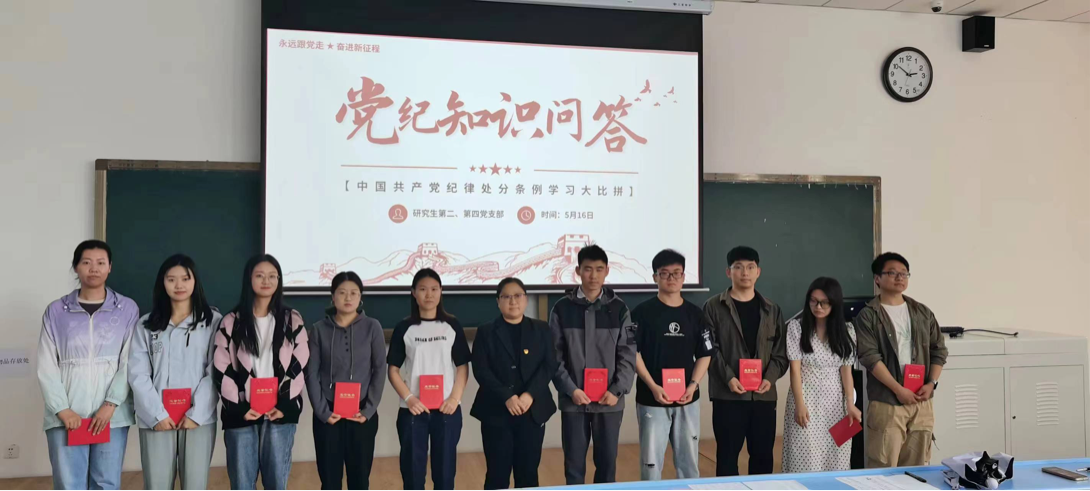 为深入贯彻学习《中国共产党纪律处分条例》,推动全面从严治党向纵深发展,WilliamHill中文官方网站研究生第二党支部和WilliamHill中文官方网站研究生第四党支部于2024年5月16日下午联合举办了“把遵规守纪刻在心”主题党日活动。研究生第二党支部书记侯巍老师作为主持带领支部全体党员对《中国共产党纪律处分条例》进行集中性学习。同时,以遵规守纪 严于律己 做新时代“学纪、知纪、明纪、守纪”新青年为主题进行了党纪学习专题教育党课。