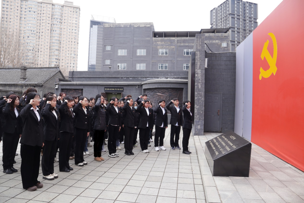 党史纪念碑前,全体党员面向鲜红的党旗,高举右拳、重温入党誓词。大家用铿锵有力的誓言践誓自己的初心,表达对党的深厚感情和为共产主义事业奋斗终身的决心。