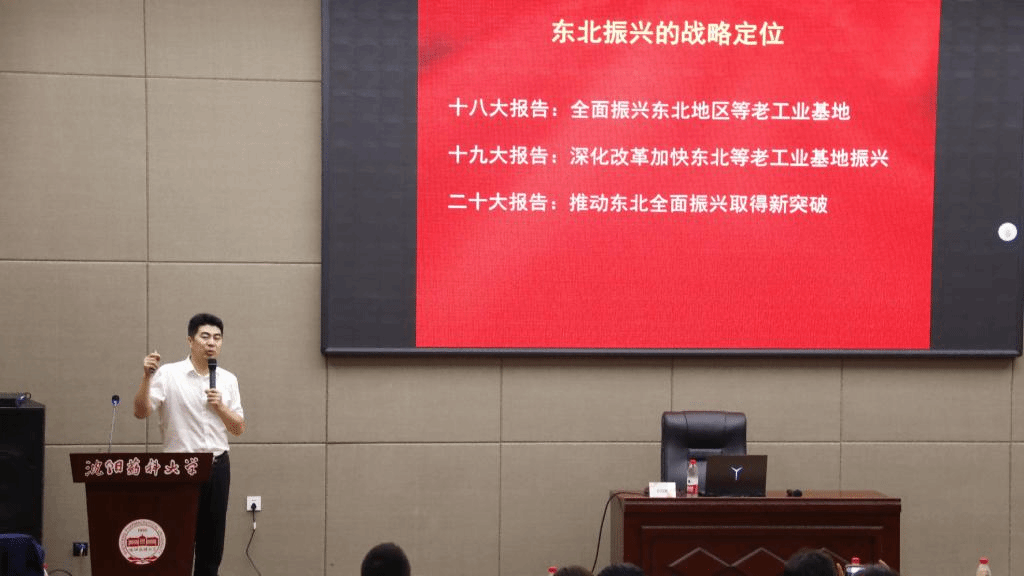 李海鹏教授以“学习贯彻党的二十大精神,在辽宁全面振兴新突破三年行动中展现更大担当和作为”为题,对习近平总书记关于东北、辽宁振兴发展的重要讲话和指示批示精神进行解读,就如何在辽宁全面振兴新突破三年行动上展现更大担当和作为进行深入讲解,并着重介绍了辽宁品牌打造相关工作。