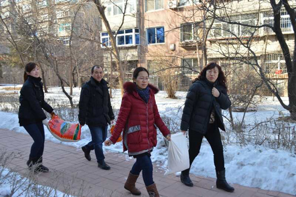 由于在户外时间过长,李玉萍冻得直打哆嗦,居民们看着心疼,强行把她拉到火炕上取暖休息。直到分完最后一户煤,李玉萍才和其他同事一起回到社区。