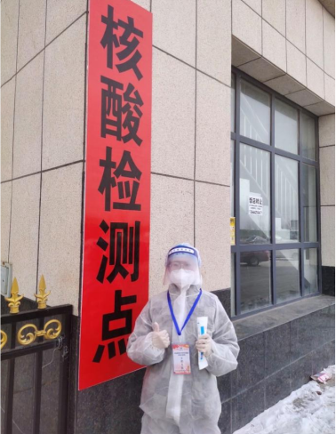 本科第七党支部教工党员王欣丽积极响应省委教育工委、省教育厅号召,提高政治站位、发挥先锋作用,主动请缨,自觉投身疫情防控第一线,下沉基层参与全员核酸检测,配合完成千余人次核酸采集工作,以实际行动践行初心使命、彰显共产党员鲜亮底色。