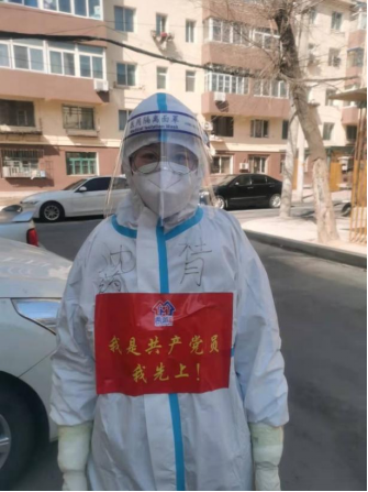 本科第一党支部预备党员高雪蓉于2022年2月18日成为了内蒙古呼和浩特市和林格尔县克略和苑小区的一名志愿者,参与全市全员第一轮核酸检测志愿工作。高雪蓉认为通过志愿活动能为社会做一点力所能及的事情,实现自己的人生价值和社会价值。