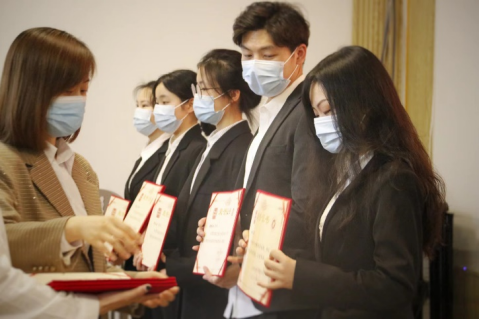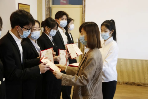 会议伊始,朴欣宇老师介绍了三个企业的基本情况,对因疫情原因无法到场的企业和领导表示了衷心的感谢,并对全体获奖同学表示祝贺。随后在宣读了三个企业助学金的表彰决定后进行颁奖环节,公司李典赛书记为全体获奖员工颁发证书。