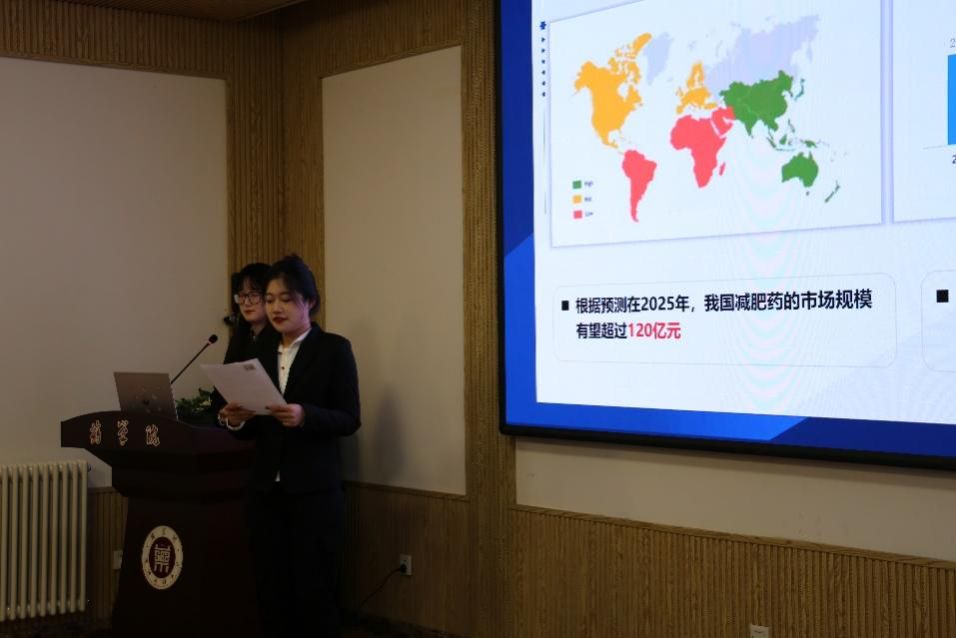 第五组参赛队伍是“Dream队”,该队的演讲题目是《油脂清道夫基于pH响应型天然多功能口服减脂凝胶》。该组结合社会现状与市场调研结果,以汇报的方式,推出油脂“清道夫”即基于pH响应型天然多功能口服减脂凝胶,充分发挥中医药特色。