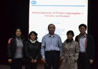 10月19日,美国辉瑞制药公司生物制品研发中心(圣路易斯)高级研究员王伟博士应邀莅临公司,在第一学术报告厅为公司师生做了题为《Immunogenicity of Protein Aggregates - Concerns and Realities》的学术报告,本次报告由研究生处和WilliamHill中文官方网站共同主办,药剂系石凯副教授主持了报告会,毛世瑞教授、杨丽教授、蔡翠芳副教授、车鑫讲师及博士、硕士研究生等参加了本次报告会。 在报告中,王伟博士用流利地道的英语,从蛋白质药物聚合物简介、生产中的常见问题以及蛋白质药物聚合物的免疫原性等三个方向进行了深入浅出的讲解,报告中穿插了诸多关于美国药品申报中涉及的事项。语言轻松诙谐,通俗易懂,在报告后,与会师生踊跃发言,就蛋白质药物制剂和美国药物专利问题向王伟博士请教,王伟博士一一进行耐心解答。